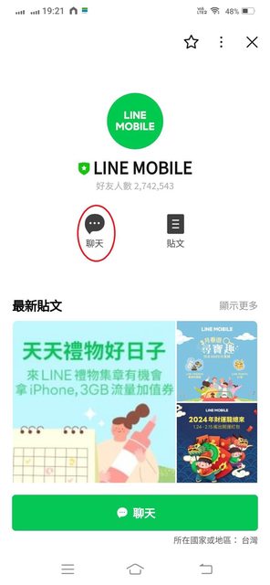 ○D.去門市親辦或收宅配後,把新辦門號綁定LINE帳號開通,拿到LP回饋之方法。 17.門號裝上手機後,輸入SIM卡的PIN碼預設值0000,啟用門號。 18.進入手機的Line app 系統,搜尋"LINE MOBILE",在「官方帳號」一欄就會跳出,按右 邊紅圈加入好友與聊天 。 https://i.imgur.com/U1LNktG.jpeg