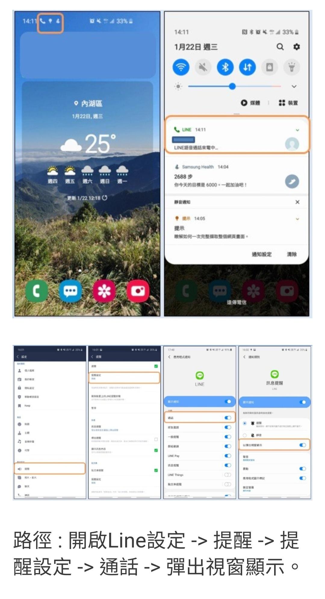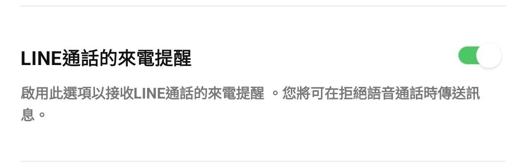 shrimplai : 設定->通話->LINE通話的來電提醒,打開 04/25 16:20