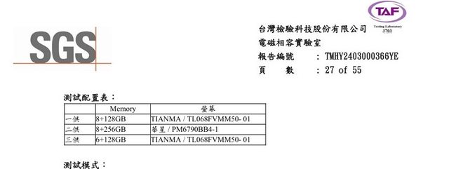 NCC的檢驗報告有16+512G和8+256G這兩種