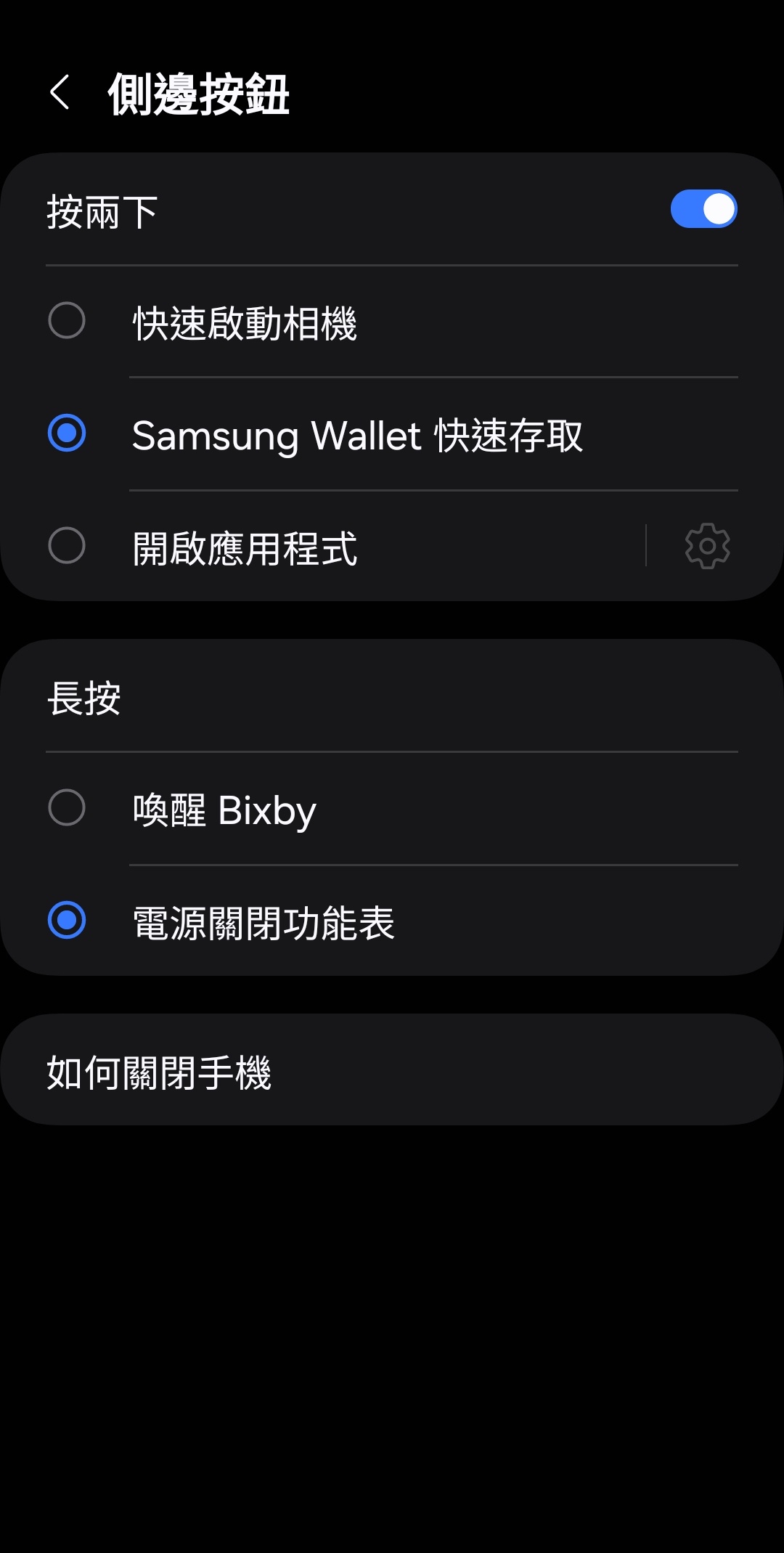 推 jdcbest : 三星的側邊關機鈕則是可以設定的,你可以設定成 06/30 13:55