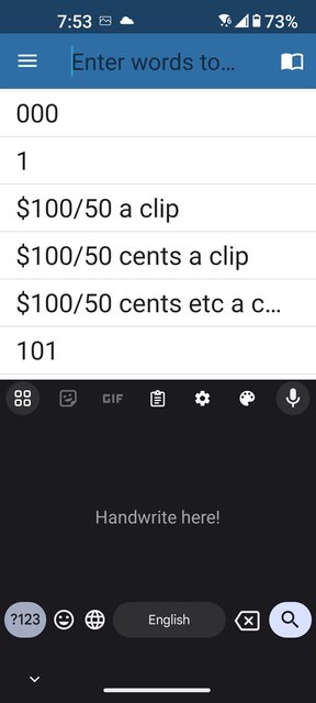 4.這是切換到手寫輸入的情況,可以看見右邊的語音辨識的麥克風圖示是有的: