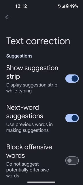 correction」,然後把「show suggestion strip」打開,上面那一排就會出現了,其中
