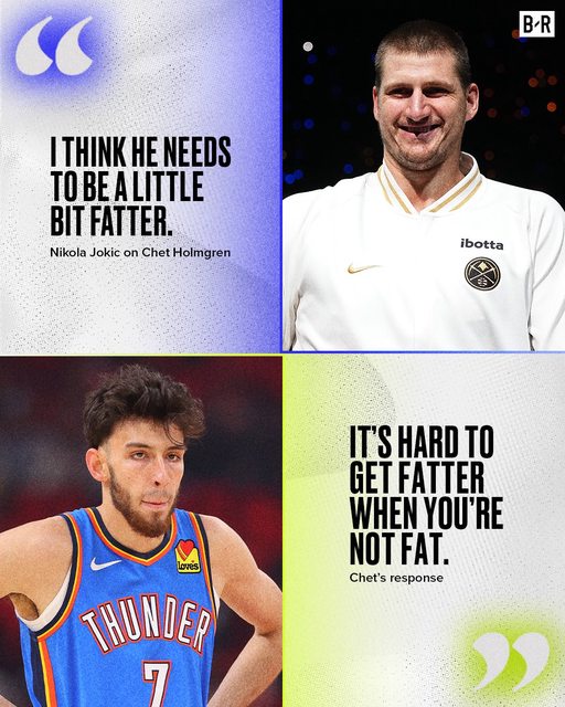 Thunder rookie Chet Holmgren responds to Nikola Jokic’s comments that he needs to get ‘fatter’ “It’s hard to get fatter when you’re not fat. Gotta start somewhere, I guess.” 日前阿肥對位 Chet 後表示, Chet 很有天賦但需要吃胖一點。 聞此言 Chet 表示: 當你不胖的時候,要變胖其實還滿很困難的。 不過我猜,總得要從某處開始。 變肥總要有個方向,來這罐 Cola 把它喝下去 肥的路上,有你有我 ----- Sent from JPTT on my Samsung SM-A146P. -- ※ 發信站: 批踢踢實業坊(pttweb.org.tw), 來自: 27.53.113.235 (臺灣) ※ 文章網址: https://pttweb.org.tw/NBA/M.1698797033.A.F60