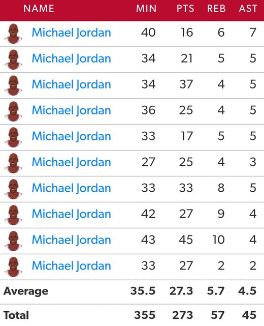MJ生涯前10場先發 http://i.imgur.com/s8gmv1w.jpg