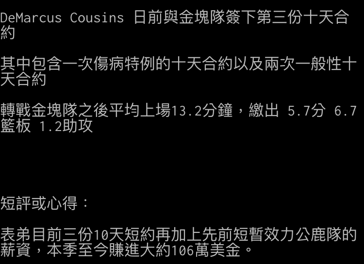 推 mib999888 : 十天短約 教練再DNP 三場 12/19 12:55