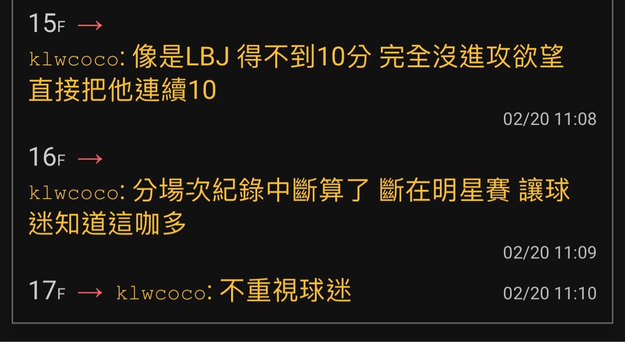 → jamescle23 : 20奪冠送給老大,結果你整天為了酸詹酸湖,笑死 04/25 21:07
