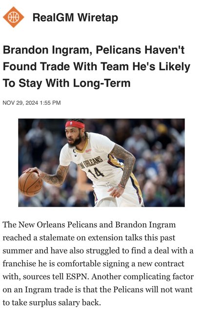 → vince4687 : 馬刺不是沒機會 只要Ingram願意簽短約就有可能 11/30 23:03