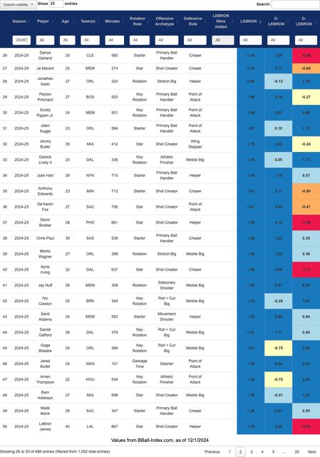 推 jay228 : LEBRON某些數據很怪 例如Towns防守是正的 DEPM -1.8 12/01 19:39