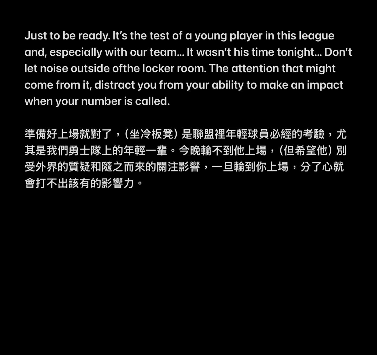 推 a20351 : 不要被更衣室外的雜音影響 怎麼不說造成原因的是誰 04/14 11:42