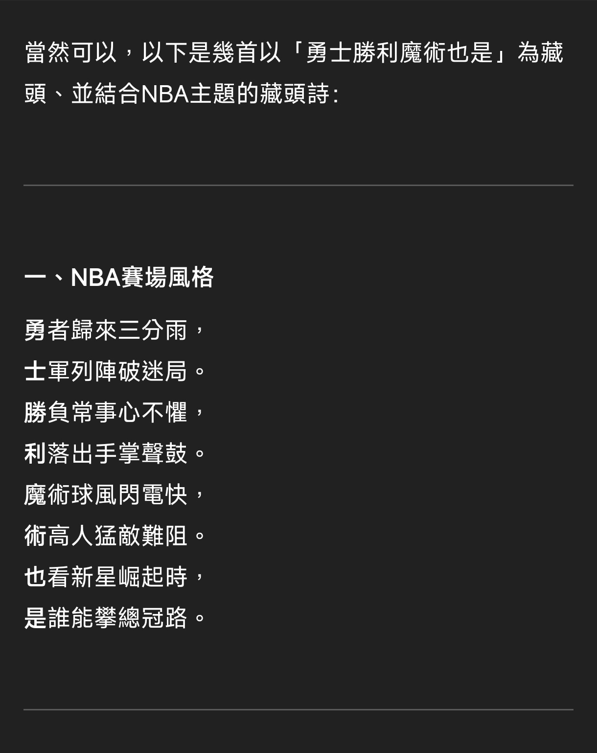 → mscmobitai : 新聞可以改成 :勇士將在第二輪等待湖人和灰狼勝者 04/16 13:23