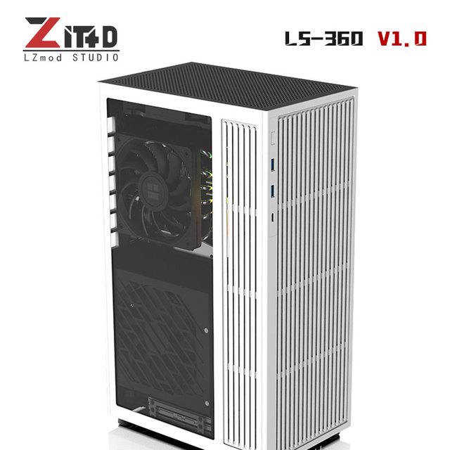 (3).LZmod LS-360水冷立式ITX机箱 独显支持40系显卡 ATX电源