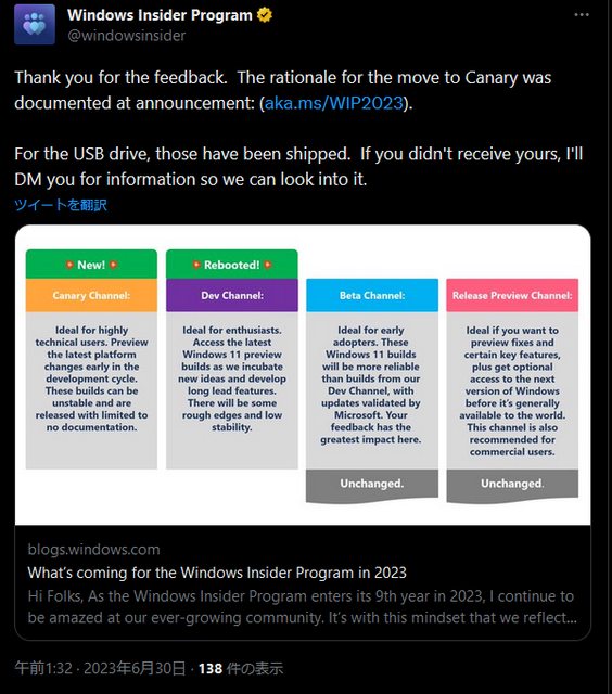 Twitter抱怨每次更新就沒Canary的份。雖然微軟已經多次強調Canary的更新是著重在