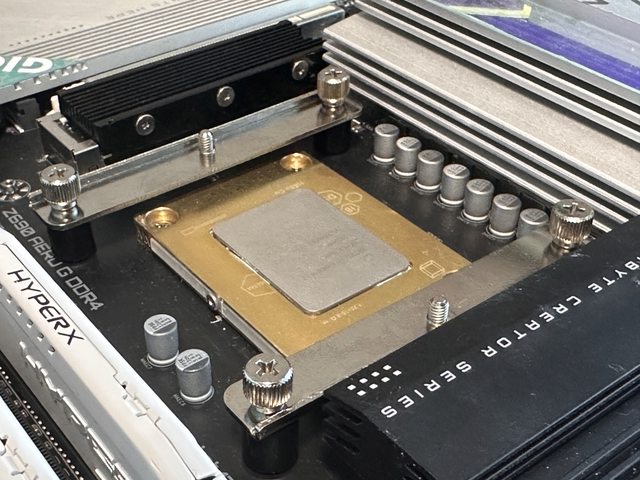 金屬背板供INTEL CPU安裝時使用,透過調整螺絲卡扣的方向來應對LGA1200或1700腳位,
