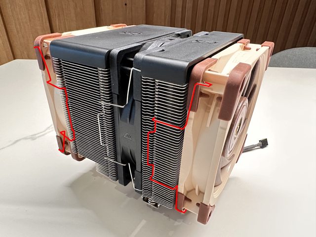 微調整了雙塔結構的前塔鰭片厚度(縮減約2.5mm)、後塔鰭片厚度(增加1mm)及銅底寬度(