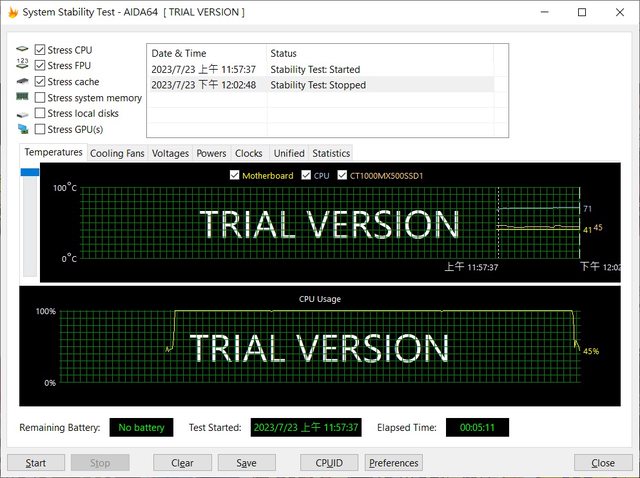 燒機5分鐘左右PA120的溫度約在63度左右浮動