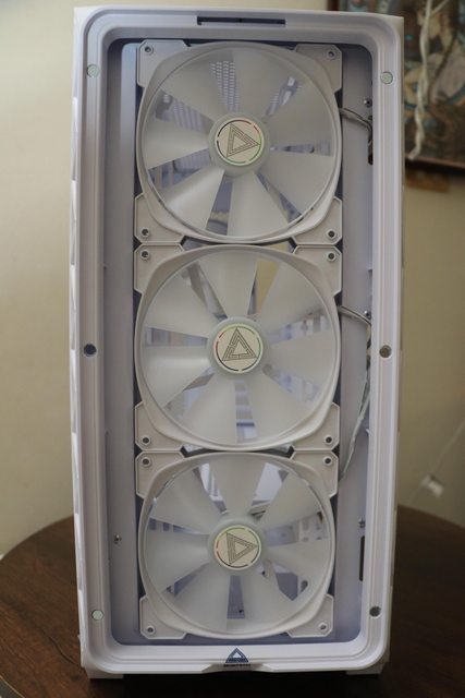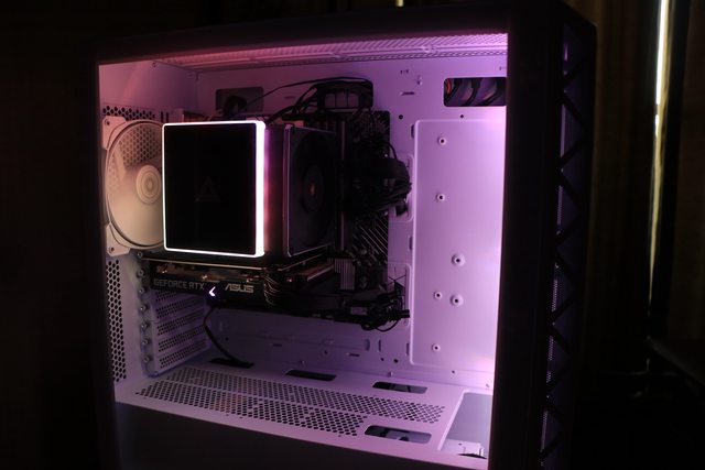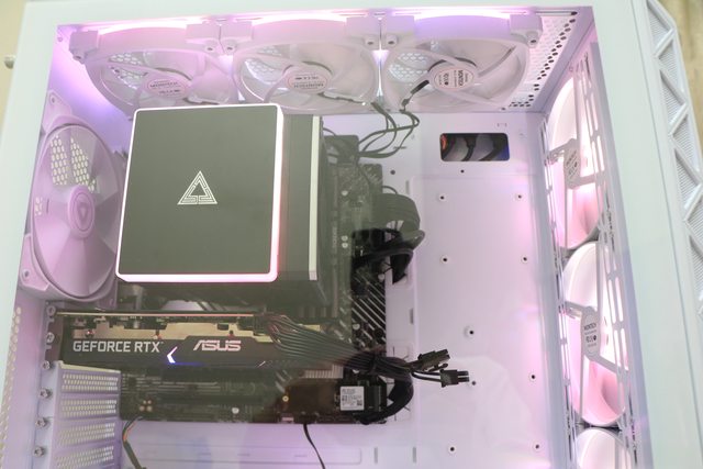 裡面是14公分ARGB風扇,效果似乎還不錯,這個風道設計應該蠻保險的,要熱都難