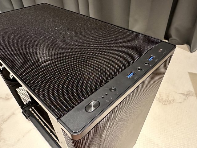 前面板及上蓋皆為通風網孔設計,IO位於機殼上方,提供2個USB A孔及2個TYPE-C 孔。
