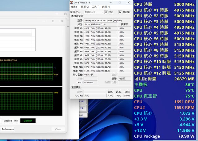 CPU TEST 最高溫度 75-76 時脈 all core 5G