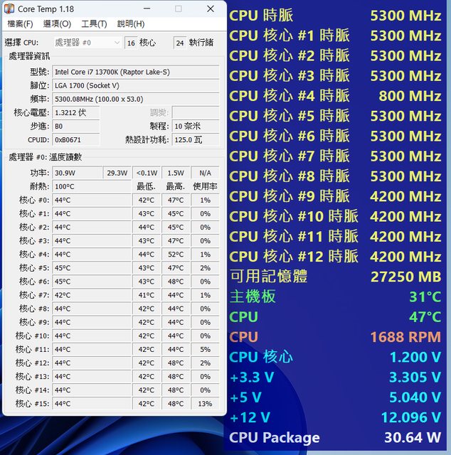 轉換至 Intel Core i7 13700K @ 1.3v 預設 Z790 D5