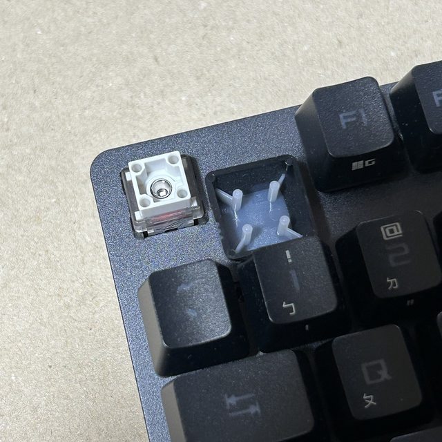 感覺回彈的力道較厚實, 應該跟鍵帽腳位設計有關?