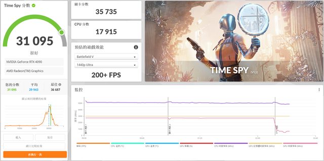 Time Spy 跑分31095 (顯卡跑分最高溫7X度)