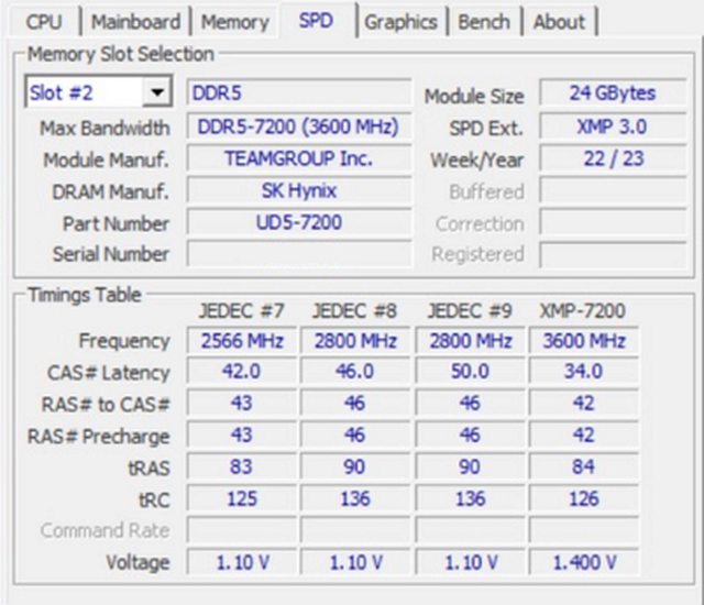 工作時脈7200MT/s 34-42-42-84電壓1.4V