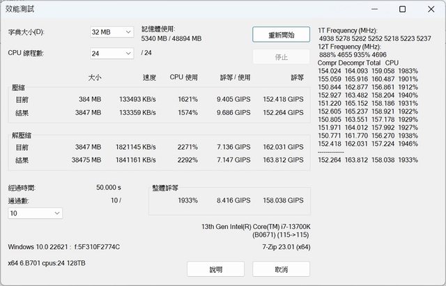 7- ZIP ( 7600MT/s) 經過時間 50/s