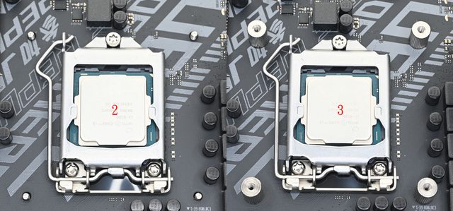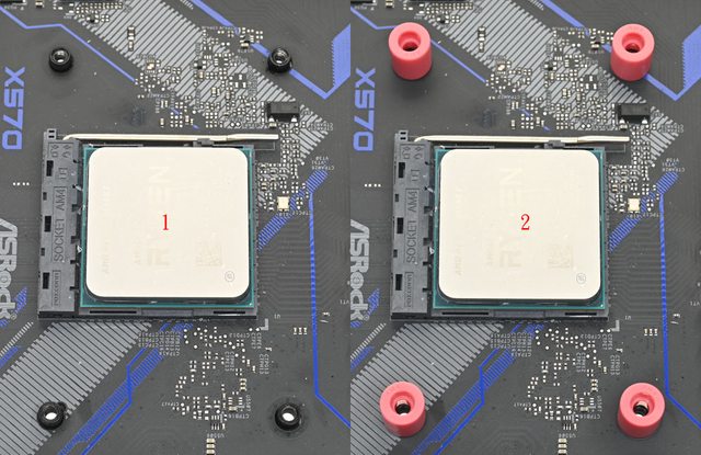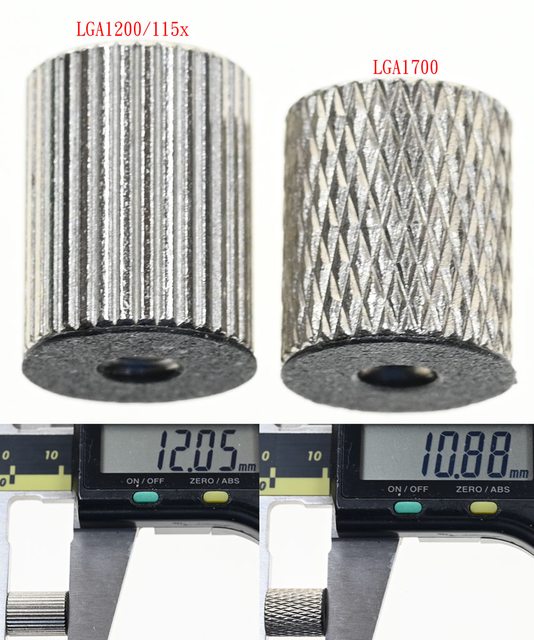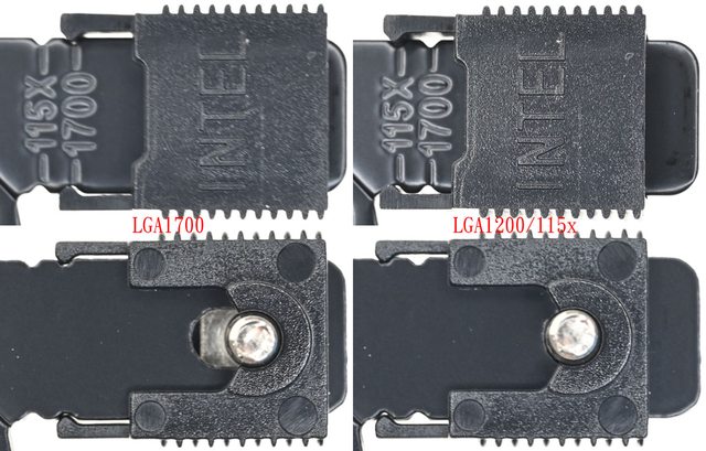 ▼LGA1200/115x托架固定柱(左)為直條紋溝槽,含墊片長度12.1mm;LGA1700托架固定柱(