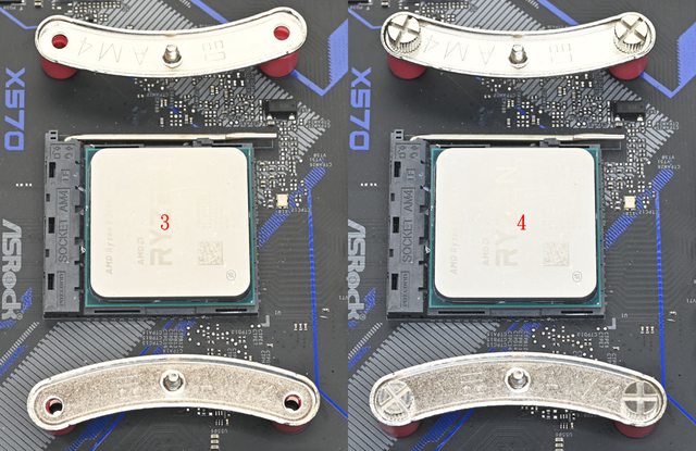 ▼放上AMD AM5/AM4托架(3),對準孔洞插入AMD托架固定手轉螺絲,然後鎖緊(4)
