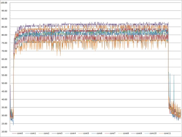 ▼高負載30分鐘CORE TEMP溫度記錄圖
