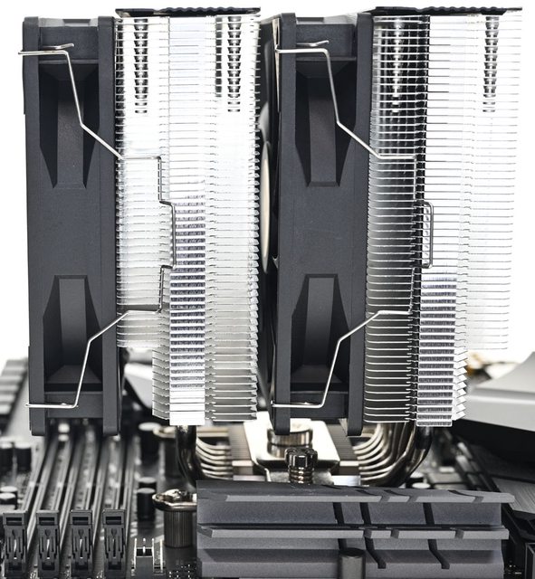 ●高度157mm雙塔採向上偏置設計,下方散熱鰭片裁切處理,提高安裝相容性