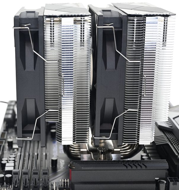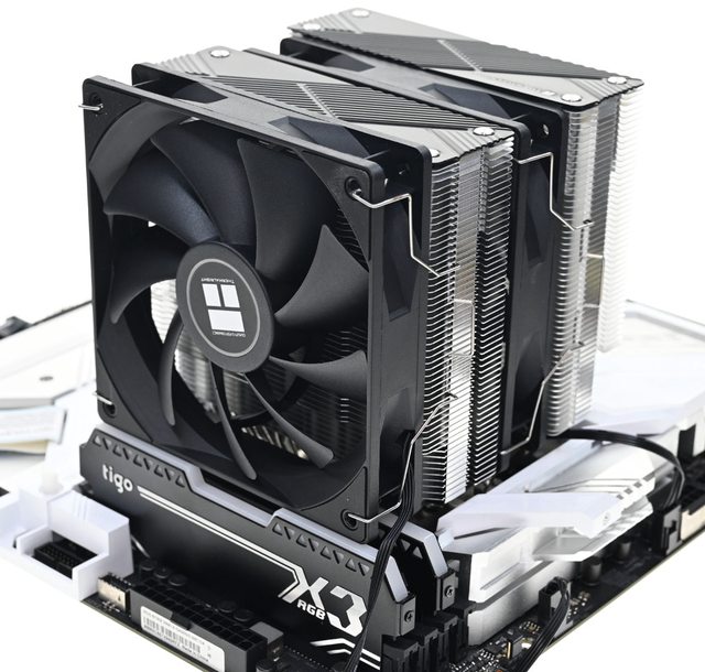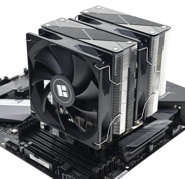 相較於體型相近且同為雙120mm風扇雙塔散熱器的Thermalright索摩樂Peerless