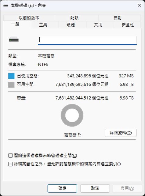 格式化後實際容量為6.98TB(7153.94GB)