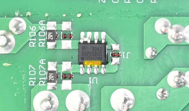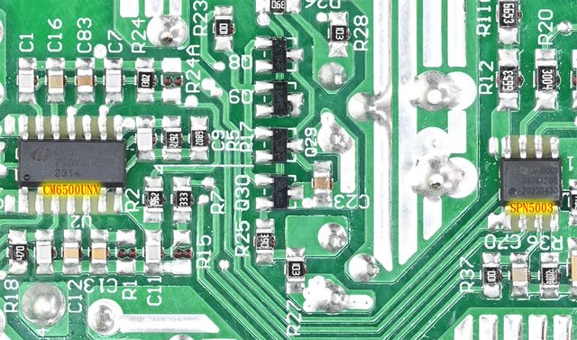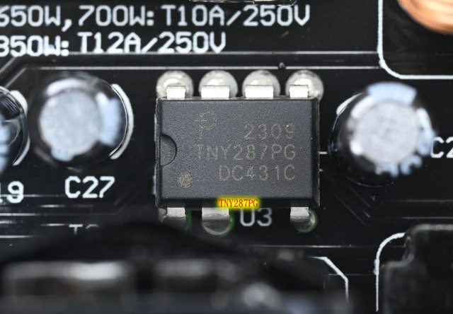 ▼主電路板背面的X電容放電IC為Power Integrations CAP200DG
