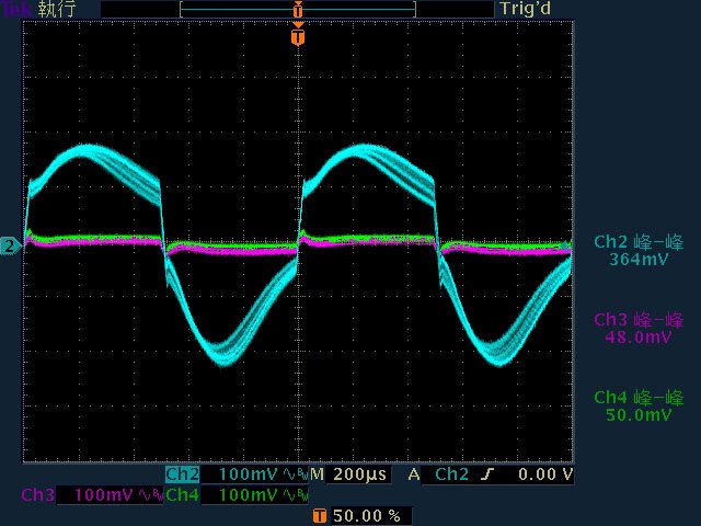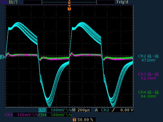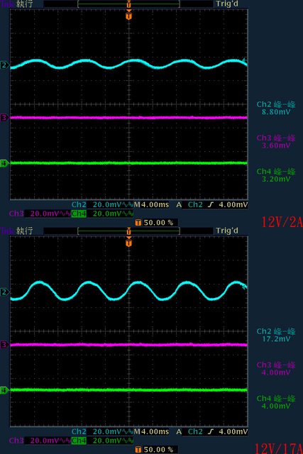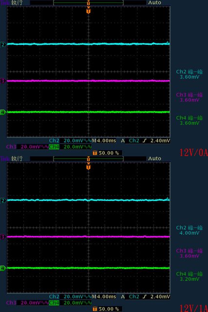 ○輸出無負載至輸出12V/1A時12V無明顯漣波;輸出12V/2A以上12V漣波波形固定;輸出
