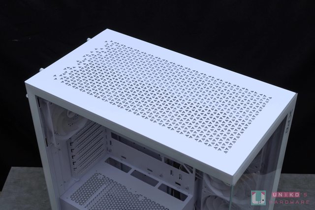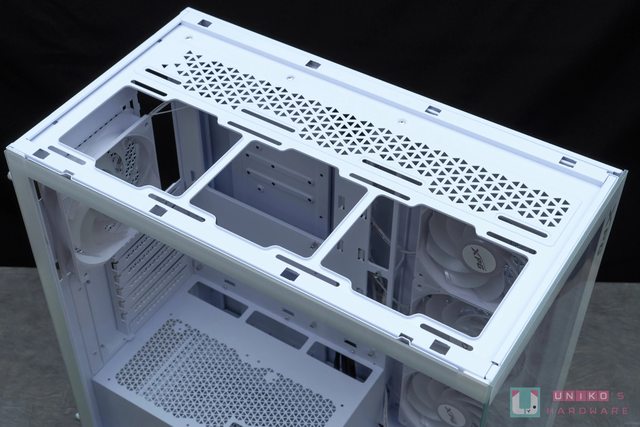 落設計。機殼上方區域支援 120 mm x3 / 140 mm x2 的風扇,以及最大到 360 mm 的水冷