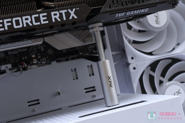 此外還有提供給顯示卡水平安裝時固定支撐用的 XPG 支架,可調式的旋轉設計方便對應不