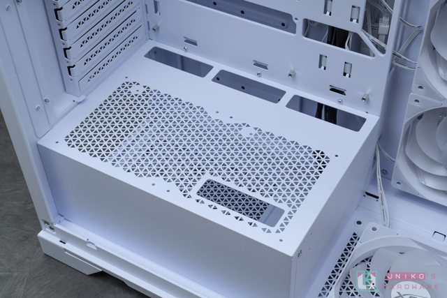 由於 HDD / SSD 空間安裝位置有獨立面板,因此在捨棄傳統 HDD 硬碟支架安裝槽後,電源