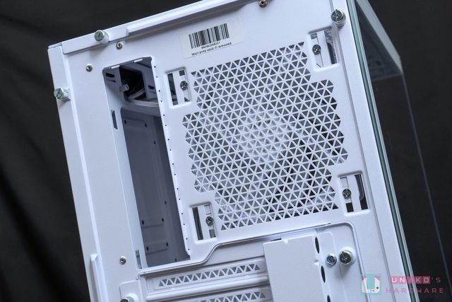 機殼後方中段預設支援 7 組水平顯示卡 PCIe 槽位,下方電源供應器部分支援 ATX 尺寸,
