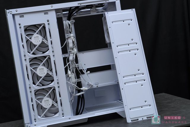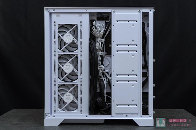 主機板安裝位置上方和側邊都留有大量線材走位槽空間,也有保留大量束帶固定用槽位方便