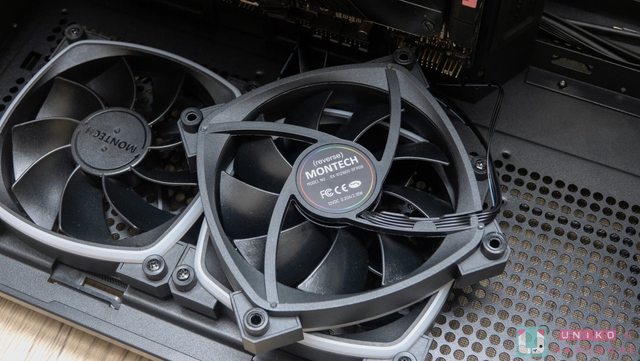 雖然內附風扇從側邊、底部兩處補進氣,效率想必還是比前方來得低,為解決此問題,MONT