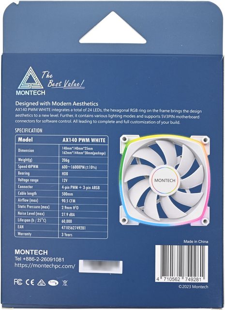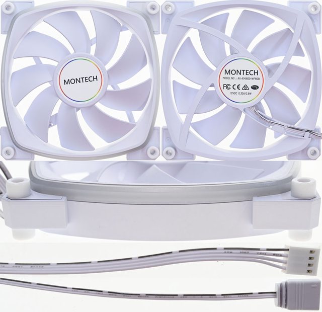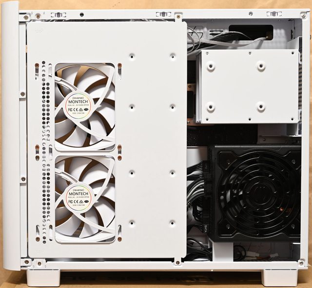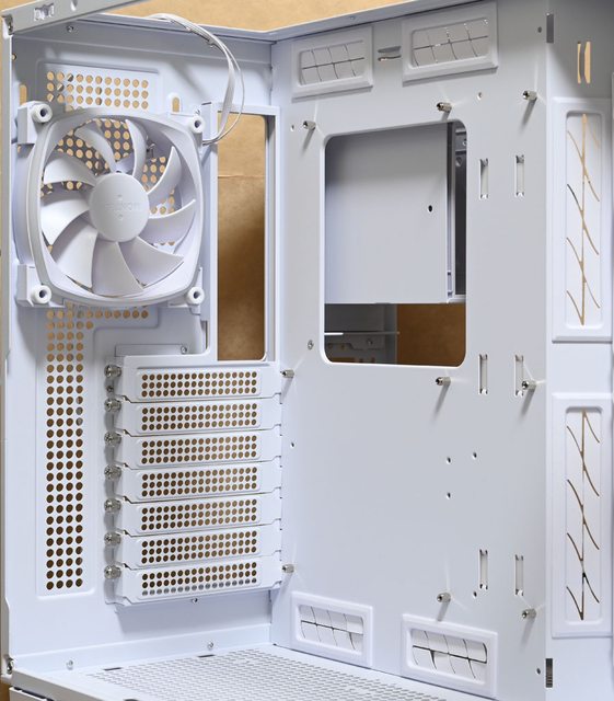 色款RX140 PWM反向風扇,底部預裝3個白色款RX120 PWM反向風扇,後方預裝1個白色款