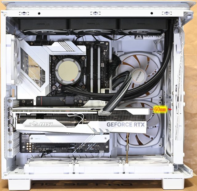 ×140×62mm),顯示卡底部與機殼右側前方風扇距離50mm