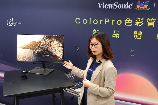 ViewSonic顯示器事業部產品開發經理郭馨方介紹與操作ColorPro Wheel。