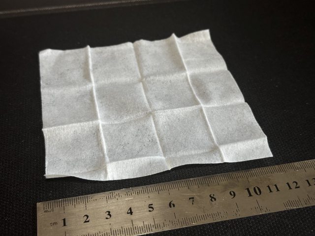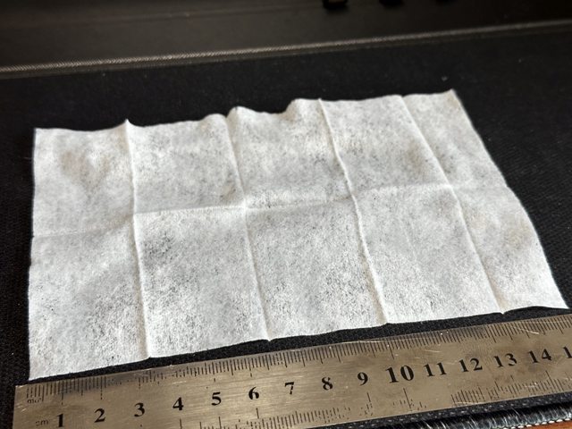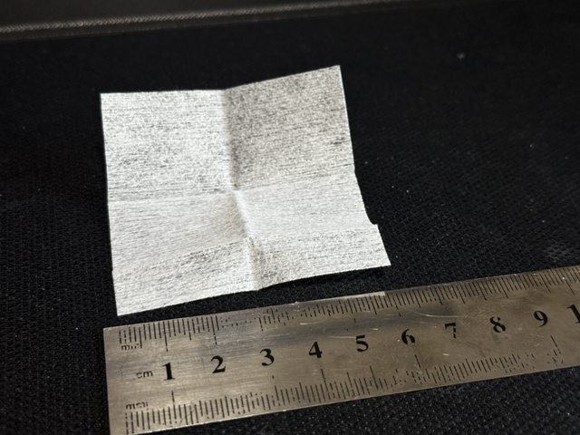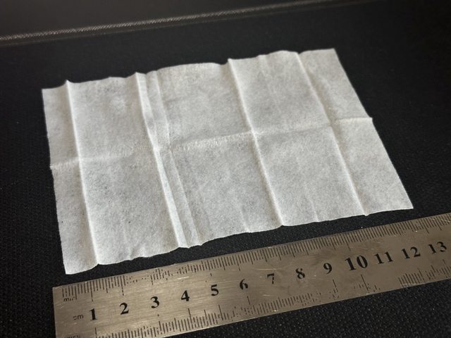 形狀為長方形,略有厚度,尺寸為本次4款中最大的15x11cm,整體相當濕潤,相比其他款
