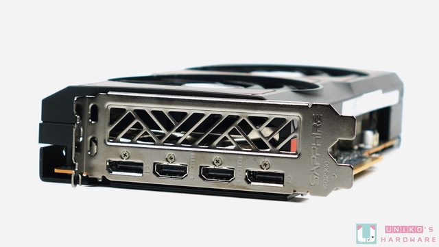 I/O 擋板下方印有 SAPPIRE 字樣,長形的開窗設計因為散熱鰭片成垂直排側把氣流往上下