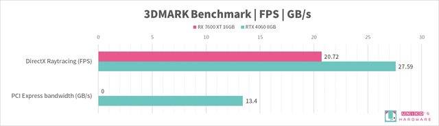 因為驅動問題,所以 RX 7600 XT 無法測試 PCIe 頻寬測試。