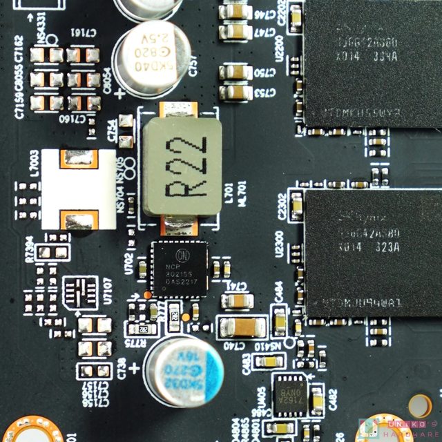 可惜有 4 顆 GDDR6 晶片被放在 PCB 背面,溫度很難降下來,廠商也只能利用金屬背板作