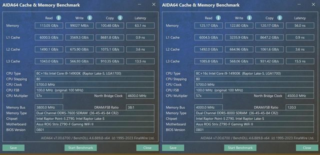 兩組 XMP 3.0 參數 6000 CL38 / 7600 CL36