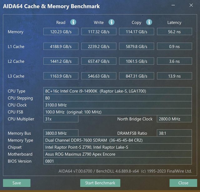 7600 寫入頻寬113.05GB/s 寫入0.99GB/s 延遲63.1